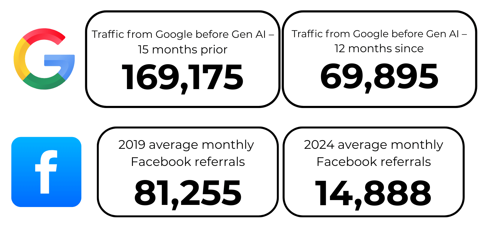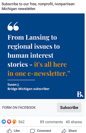 Bridge Michigan has been covering policy and politics statewide since 2011. The year 2024 brought intense audience volatility for Bridge. Like many digital news platforms, site visits cratered. Bridge lost 59% of its traffic from Google in the months after the search engine introduced AI overviews. Social media continued to decline, with monthly Facebook referrals falling to 15,000, down from 81,000 in 2019. Bridge worried that revenue would soon follow.